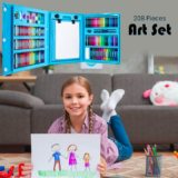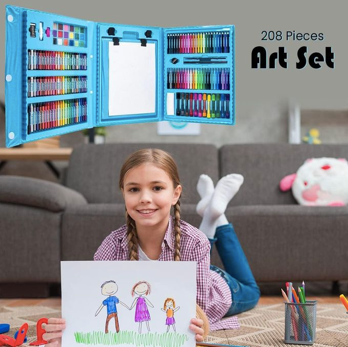 - Ensemble Complet : Comprend 208 pièces, dont des crayons de couleur, pastels, aquarelles, pinceaux, gomme, taille-crayon et plus encore.
