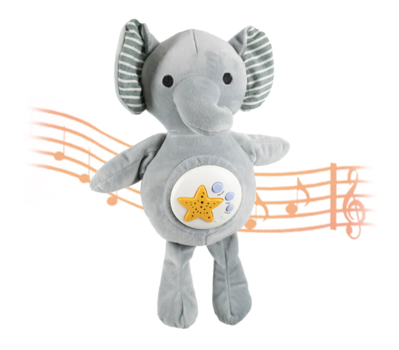 Offrez à votre bébé un compagnon apaisant avec cet adorable éléphant tout doux. Non seulement il est agréable à câliner, mais il est également équipé d’une fonction sonore pour bercer votre enfant avec des mélodies douces. De plus, un projecteur intégré illumine la chambre de jolies étoiles, créant une atmosphère sereine et magique pour le sommeil. Cet éléphant est idéal dès la naissance, parfait pour accompagner bébé dans ses premiers moments de détente. Fonctionne avec 3 piles AAA de 1,5 V (non incluses).